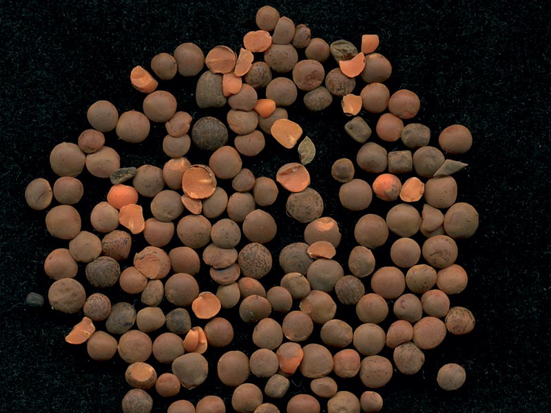 La lenticchia di Santo Stefano di Sessanio è un legume di pochi millimetri di diametro, di forma globosa e colore scuro, dal marrone al violaceo. Cresce oltre i mille metri di altitudine sulle pendici del Parco Nazionale Gran Sasso e Monti della Laga: qui lungo il versante meridionale aquilano del monte – nei territori dei Comuni di Barisciano, Calascio, Castel del Monte, Castelvecchio Calvisio e Santo Stefano di Sessanio – la pianta ha trovato l’habitat ideale, fatto di inverni lunghi e rigidi e primavere fresche. Per le dimensioni e la caratteristica permeabilità questa specie di lenticchia non richiede ammollo preliminare, ma cuoce rapidamente senza sfaldarsi. Si tratta di una tipologia specifica, selezionatasi in queste zone in antichità, come attestato in alcuni documenti del 998 riferiti al Monastero di San Vincenzo al Volturno – che a quei tempi possedeva ampi territori nella zona aquilana – in cui si citano esplicitamente legumi locali. Seminate verso fine marzo, la raccolta avviene tra fine luglio e fine agosto: le lenticchie maturano in modo scalare in tempi diversi, secondo l’altitudine del campo. La falciatura avviene quasi sempre manualmente sia per la natura impervia del territorio sia perché questo legume si sviluppa molto vicino al suolo e l’impiego di mezzi meccanici porterebbe alla perdita di oltre il 30% del raccolto. L’importanza della coltura si è protratta fino ai giorni nostri e nel 2008 i produttori hanno dato vita ad un’associazione per la tutela e la valorizzazione della lenticchia, la cui coltivazione è regolata da un preciso e rigido disciplinare tecnico; fa parte dei Prodotti Agroalimentari Tradizionali (PAT) ed è supportata dal riconoscimento del Presidio Slow Food.