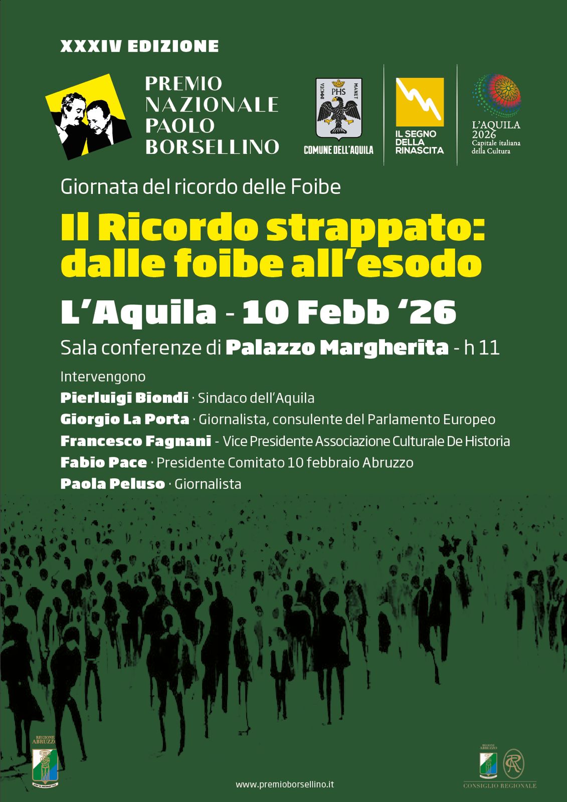 Nell’ambito della XXXIV edizione del Premio Paolo Borsellino, presso la Sala conferenze del Palazzo Margherita, si terrà una conferenza dedicata al Giorno del Ricordo delle Foibe dal titolo "Il Ricordo…