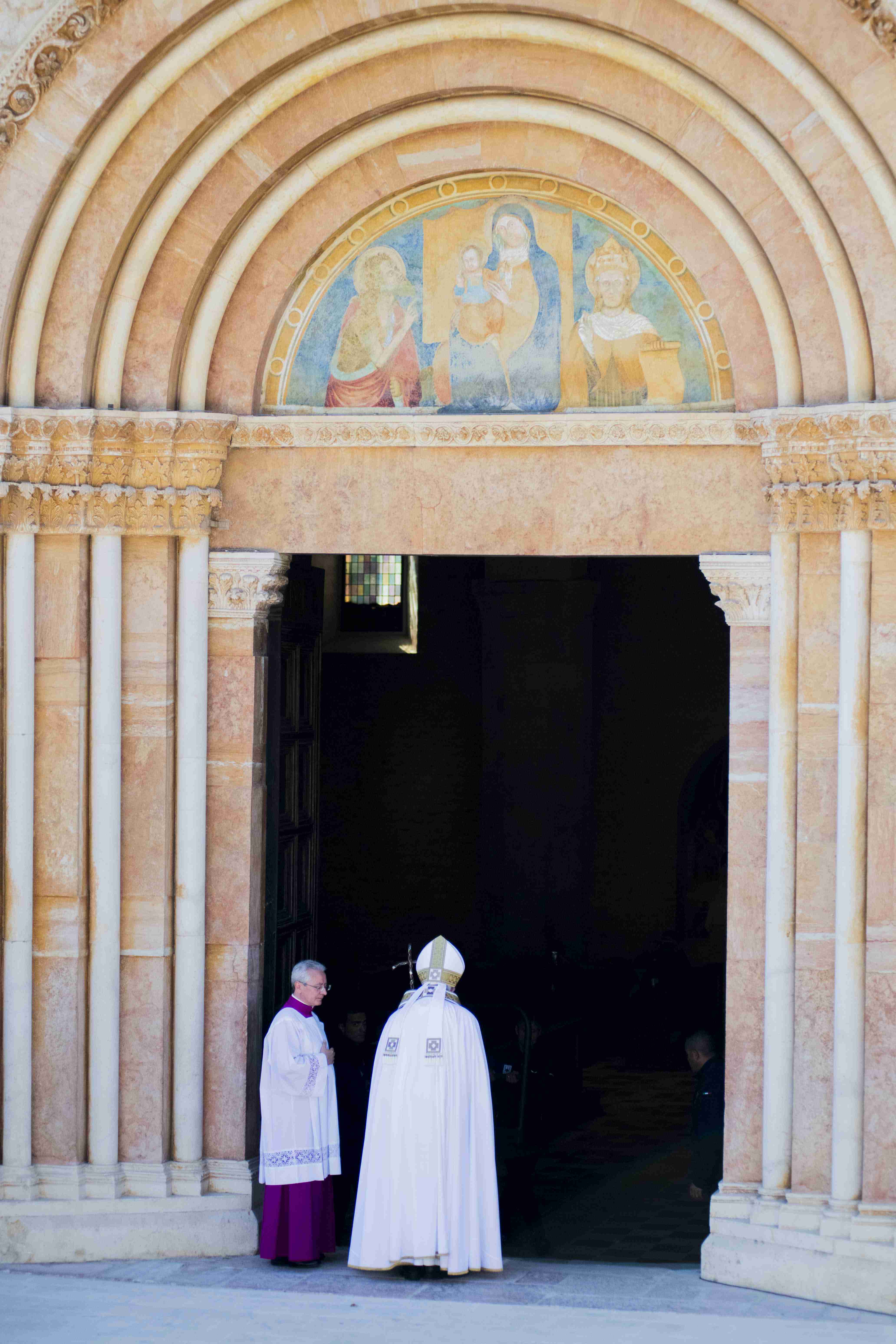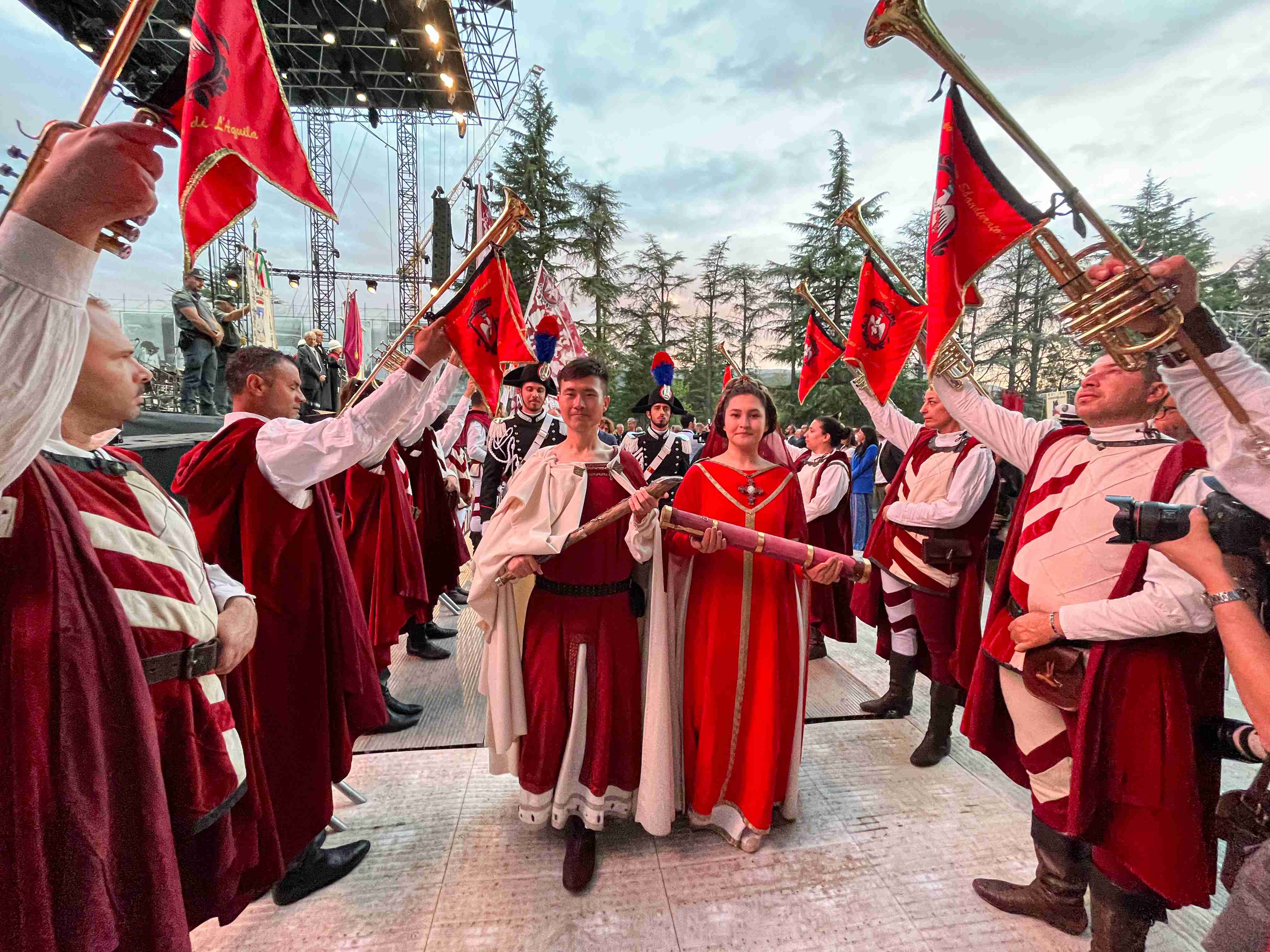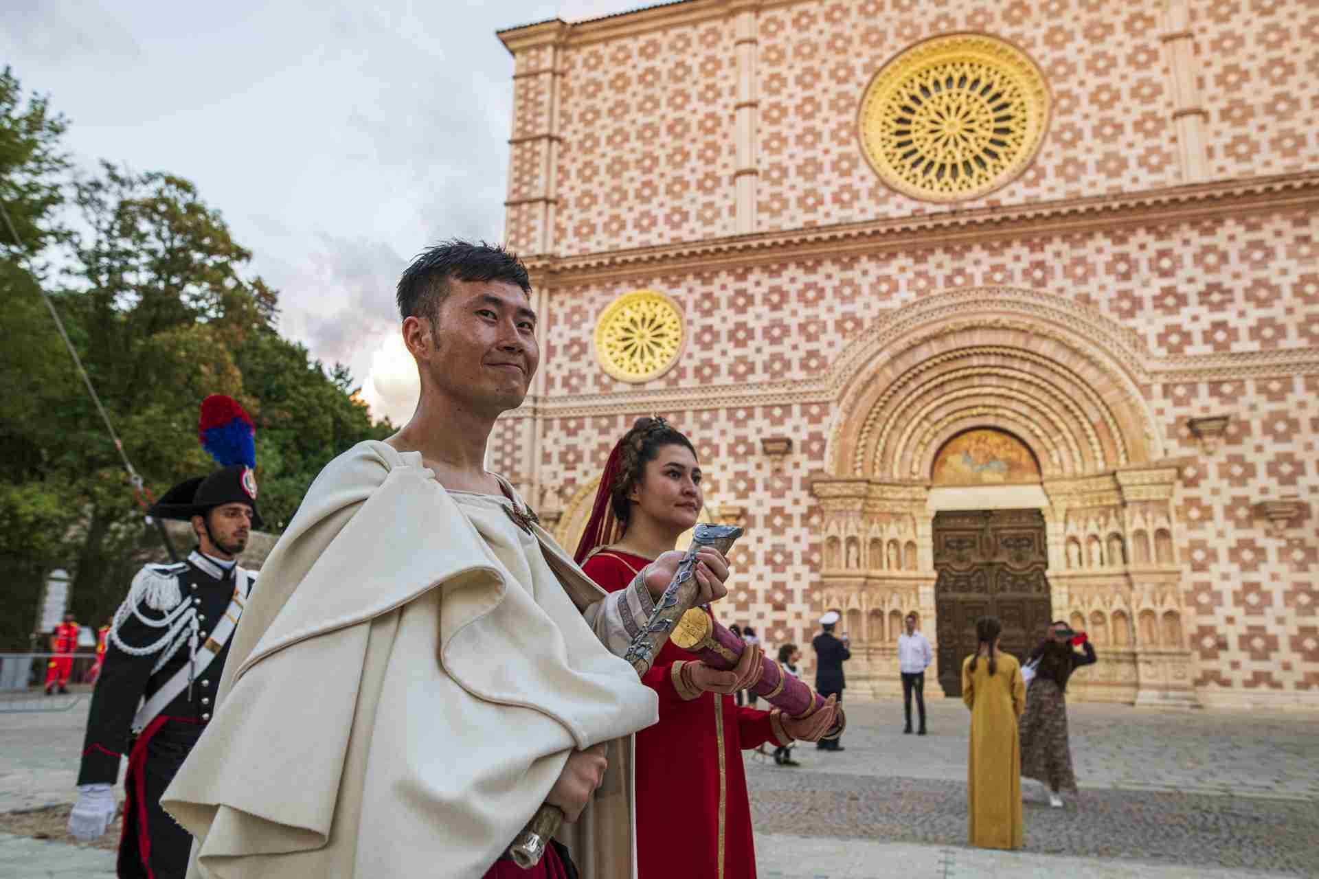 La Perdonanza Celestiniana è la principale manifestazione, culturale e religiosa, della Città dell’Aquila. Deriva il nome e i valori fondanti dalla Bolla del Perdono, il documento con il quale il Santo Papa Celestino V, l’umile eremita Pietro del Morrone, all’indomani della sua incoronazione, donò l’indulgenza plenaria da tutti i peccati a quanti “sinceramente pentiti e confessati”, avessero visitato la Basilica di Santa Maria di Collemaggio dai vespri del 28 ai vespri del 29 agosto di ogni anno. Ed era proprio il 29 agosto del 1294 quando il Pontefice ottuagenario, che i cardinali, riuniti da un tempo lunghissimo in conclave a Perugia, avevano scelto quale successore per il soglio di Pietro, lasciato l’eremo del Morrone, giunse in città, accompagnato da un folto corteo che vedeva la presenza di due re, Carlo Martello e Carlo d’Angiò. Stremato dal viaggio, volle fermarsi per l’incoronazione in quella basilica di Santa Maria di Collemaggio, allora ben lontana dalle forme attuali, di cui egli stesso aveva voluto la costruzione, in seguito ad una visione della Vergine, sul colle detto di Maggio. In quest’occasione, nel lasciare le vesti dimesse dell’eremita Pietro per assumere quelle sontuose del Pontefice Celestino, emanò la Bolla del Perdono. Un atto rivoluzionario che, in un momento di vendita delle indulgenze, apriva le porte del Paradiso agli ultimi della terra, ai più poveri e ai più bisognosi, elargendo il perdono universale a quell’umanità dimenticata che aveva affollato, per anni, la strada per la grotta del suo eremitaggio. Veniva così istituito, di fatto, il primo giubileo della storia, anticipando di sei anni quello indetto dal suo successore Bonifacio VIII. A tre mesi dalla sua incoronazione, il 13 dicembre 1294, Celestino V, nel corso di un concistoro, diede l’annuncio della sua rinuncia all’ufficio di romano pontefice. Il nuovo Papa nominato dal conclave, Bonifacio VIII, il cardinale Benedetto Caetani, temendo uno scisma da parte dei prelati ai lui contrari, dispose che il suo predecessore fosse posto sotto strettissima vigilanza. Inutile si rivelò il tentativo di fuga di Celestino verso oriente, salpando da Vieste. Fu raggiunto dai sicari di Bonifacio e imprigionato nel castello di Fumone, in Ciociaria, di proprietà della famiglia Caetani. Qui l’eremita trovò la morte, in circostanze mai del tutto chiarite, il 19 maggio del 1296.